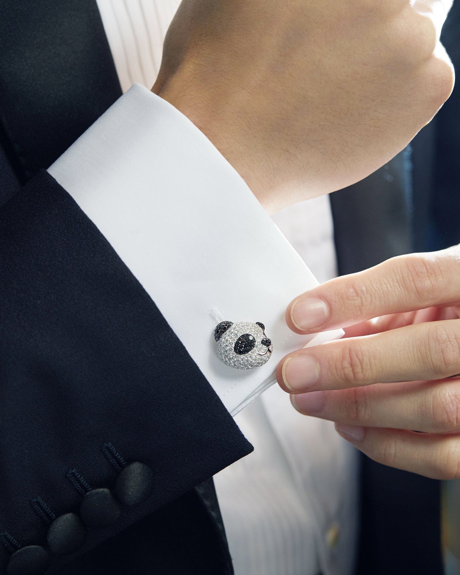 Ronald Abram’s Signature Cufflink Collection is characterised by the stark and mesmerising contrast in colour between white and black diamonds and is the perfect addition to a lounge suit or tuxedo.