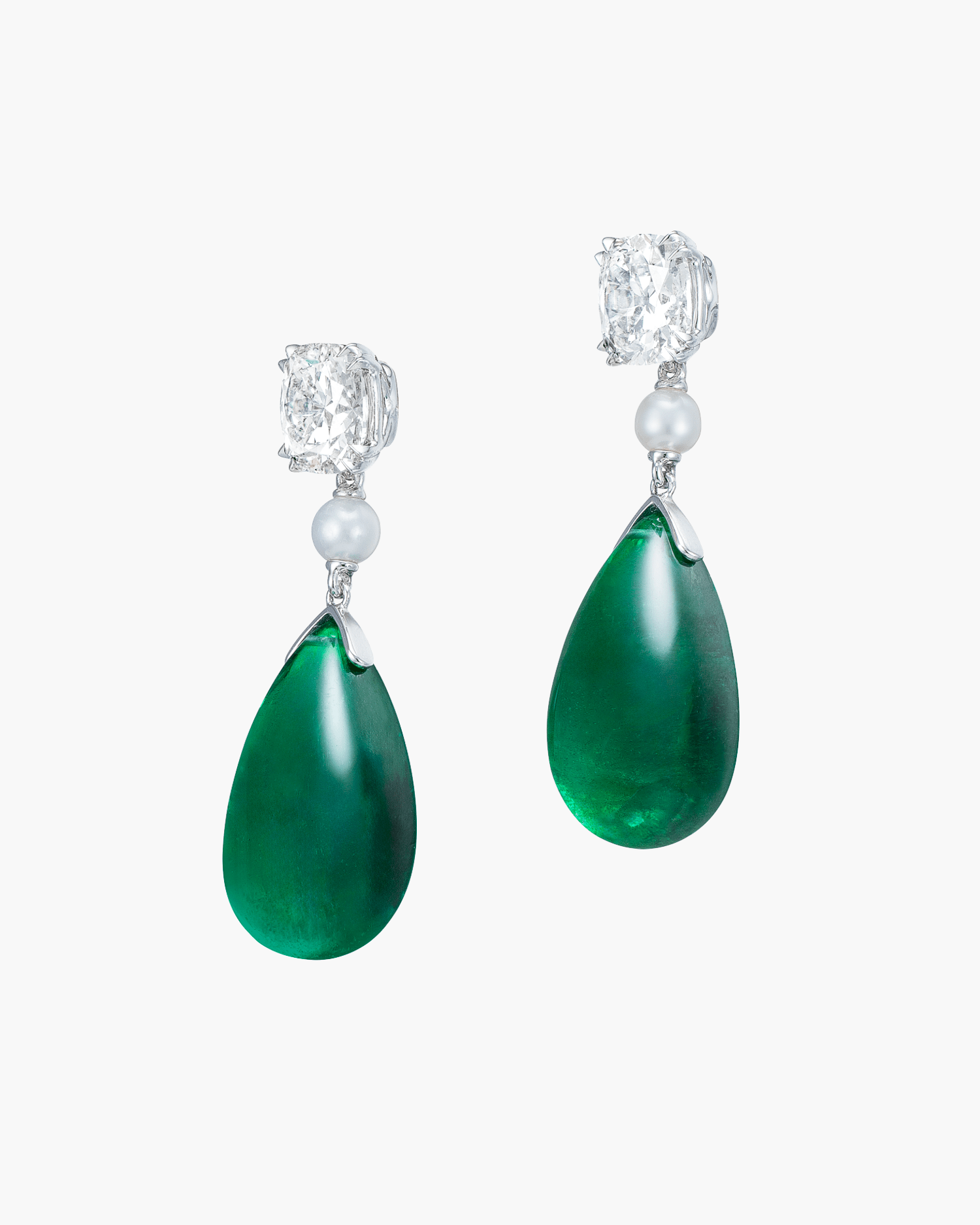 28.43 carat Colombian Emerald, Pearl and Diamond Earrings