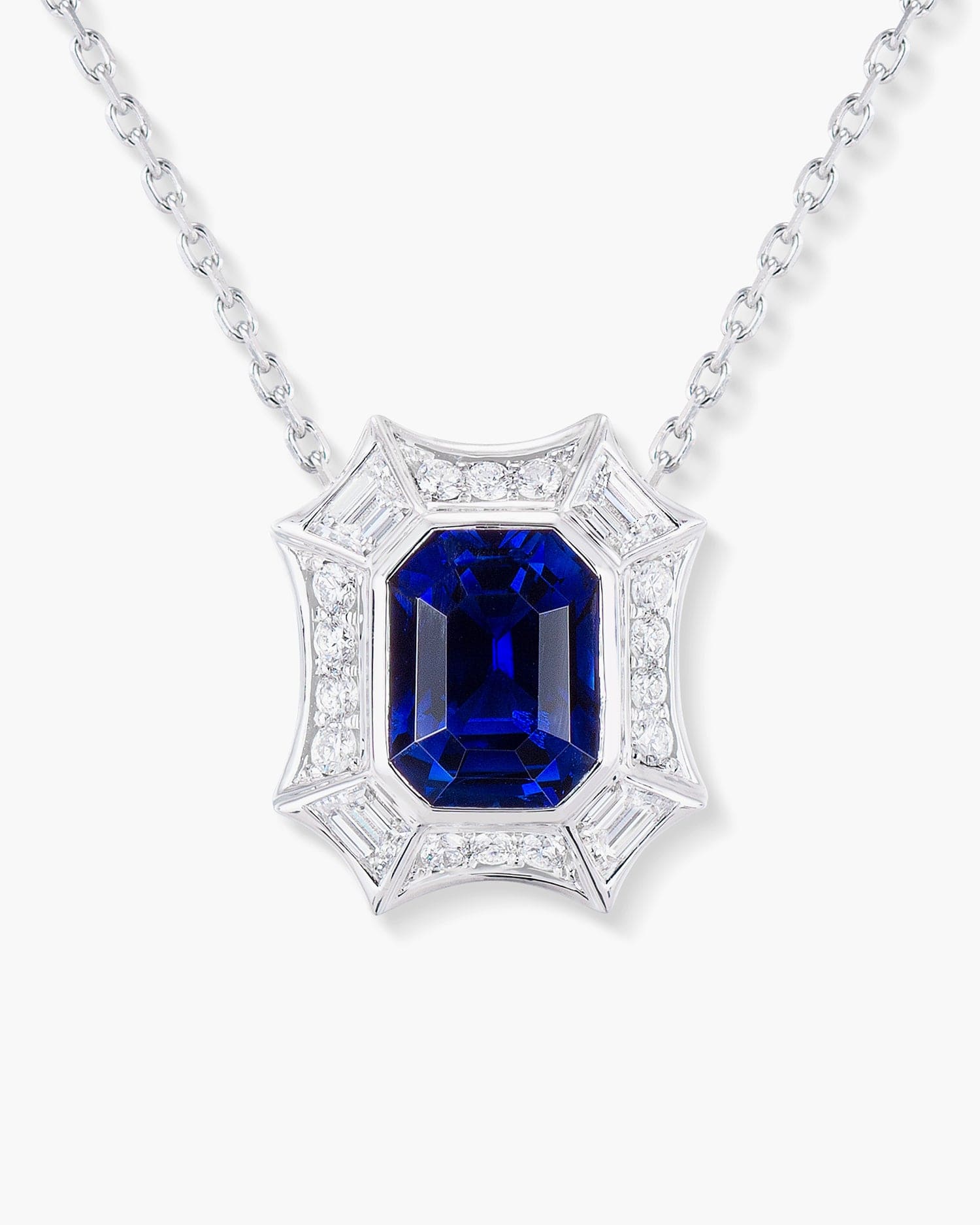 3.01 carat Emerald Cut Ceylon Sapphire and Diamond Pendant Necklace