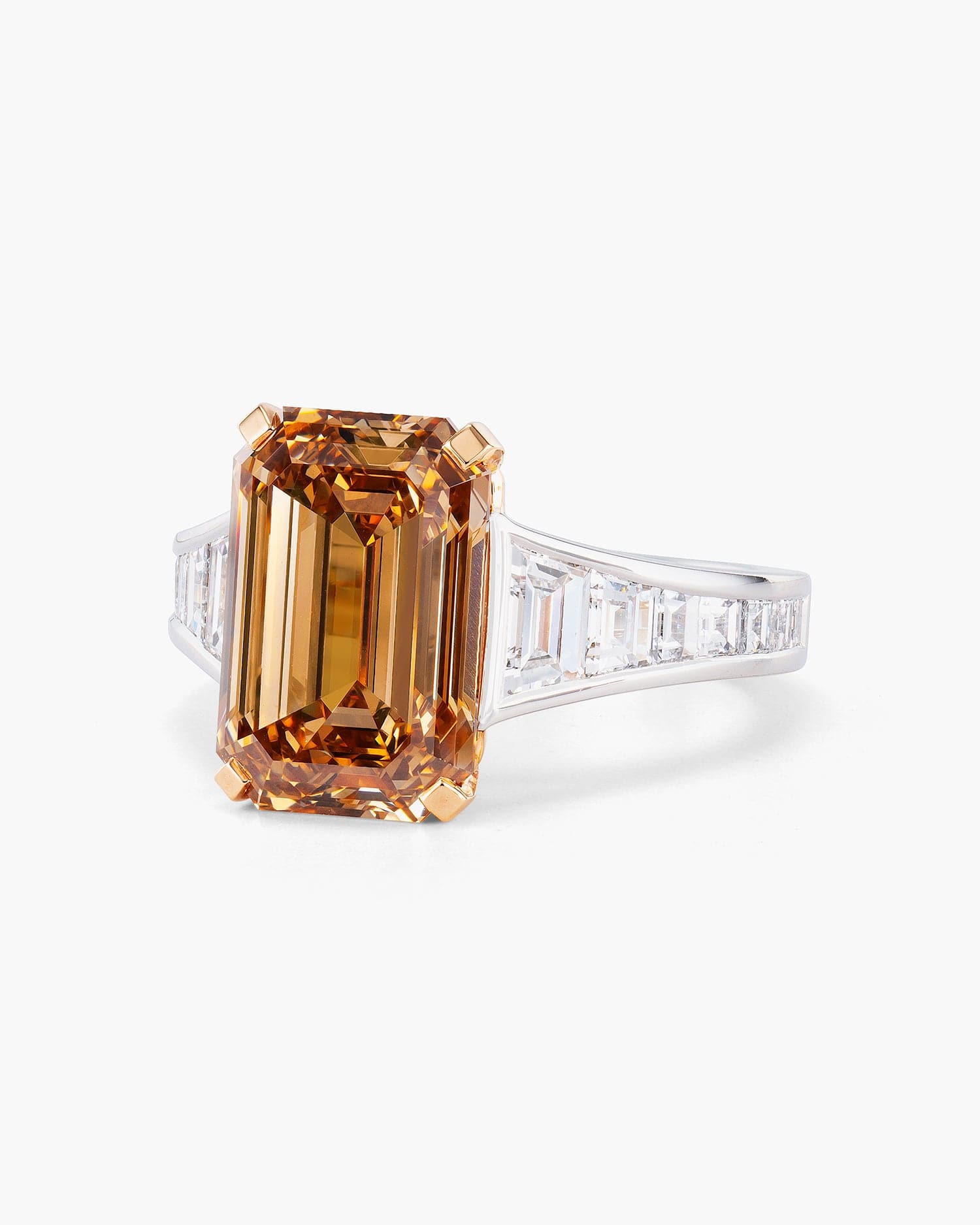 5.30 carat Emerald Cut Brown and White Diamond Ring