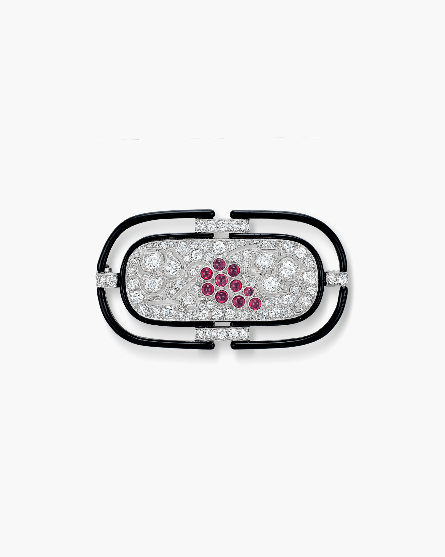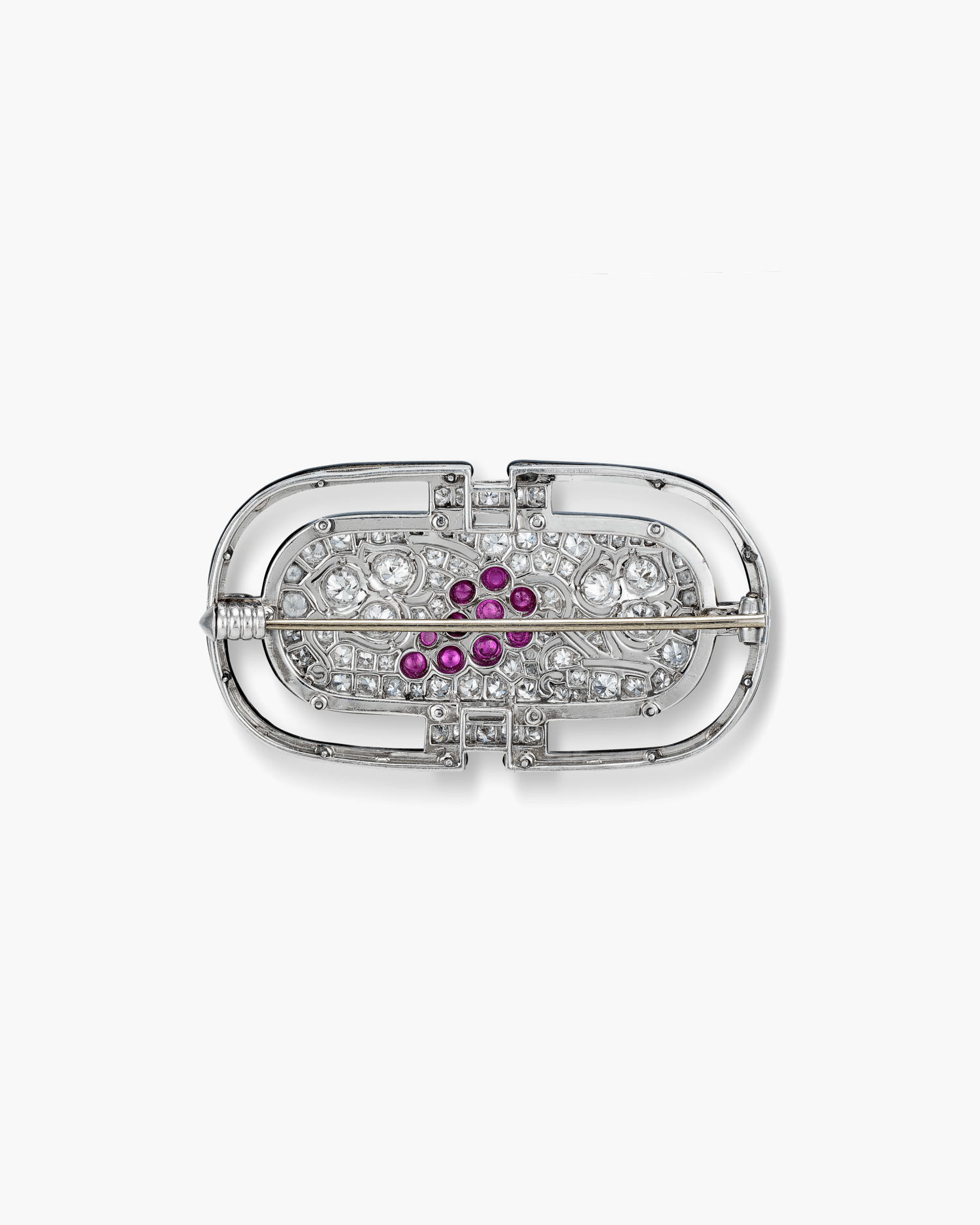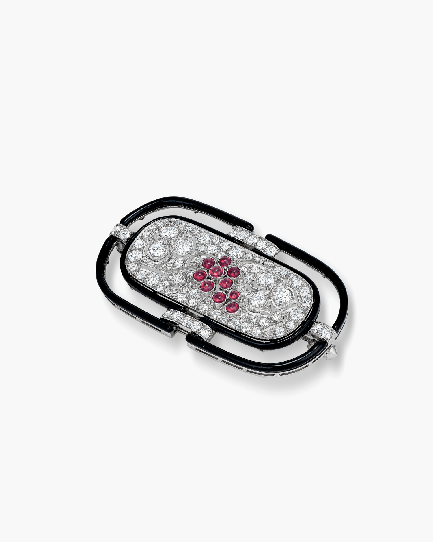 Art Deco Diamond and Ruby Enamel Brooch