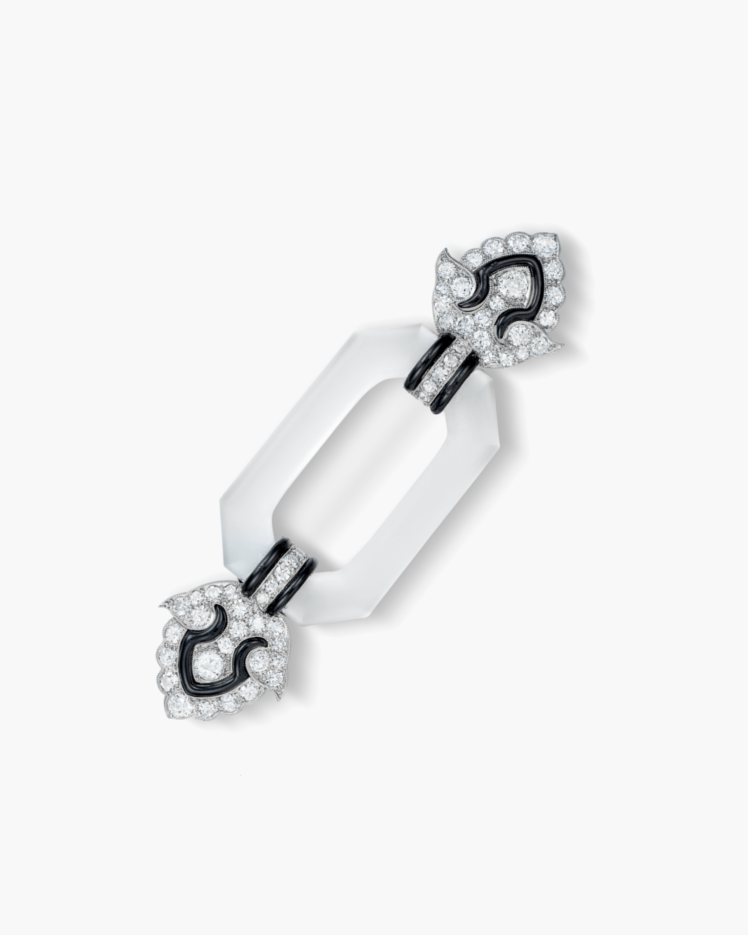 Diamond, Rock Crystal and Black Enamel Brooch