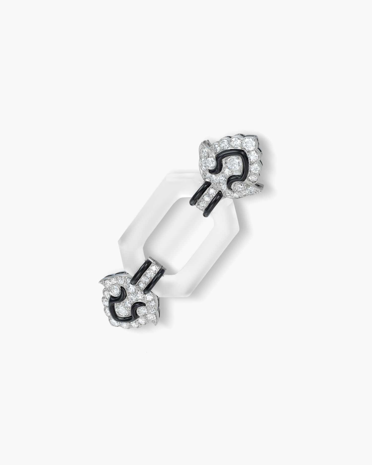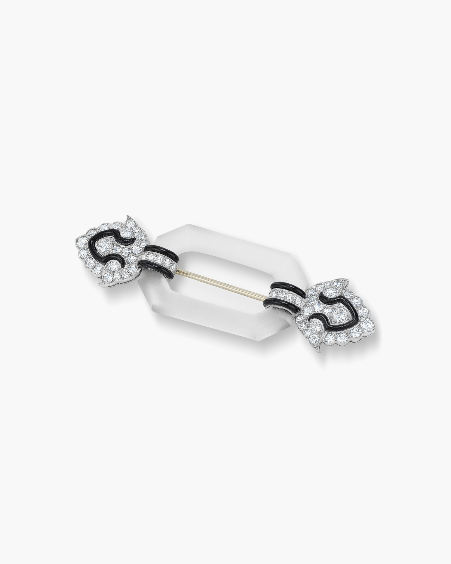 Art Deco Diamond, Rock Crystal and Black Enamel Brooch by Mauboussin