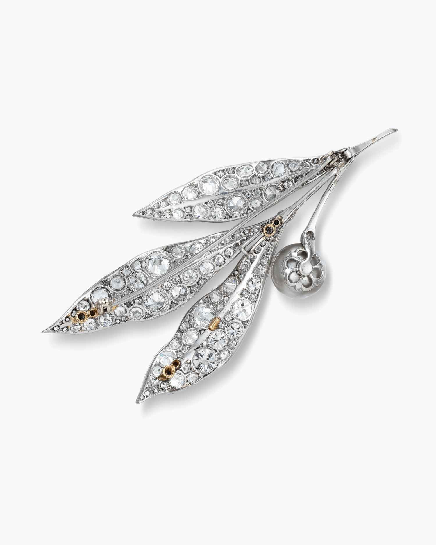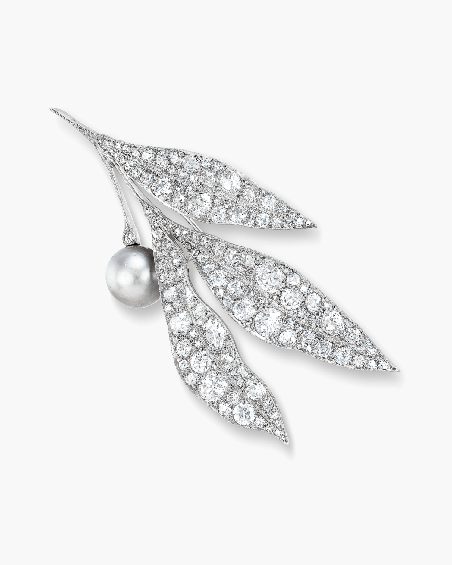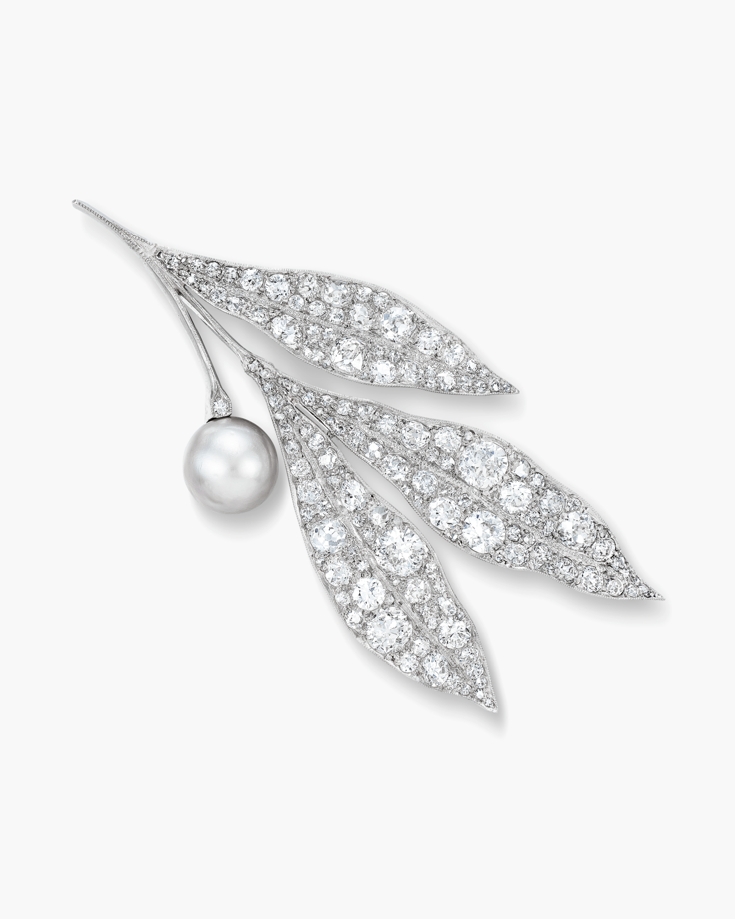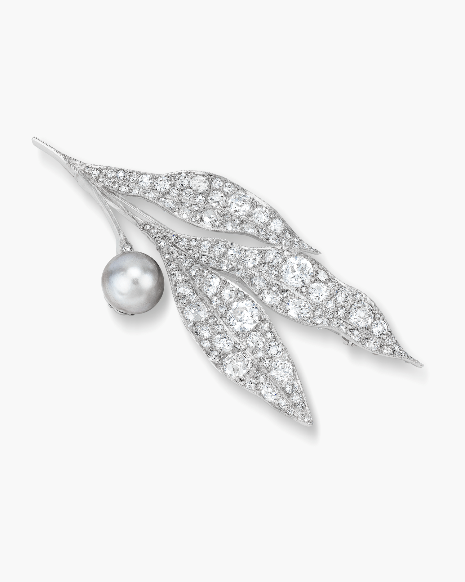 Natural Pearl and Diamond Leaf Brooch
