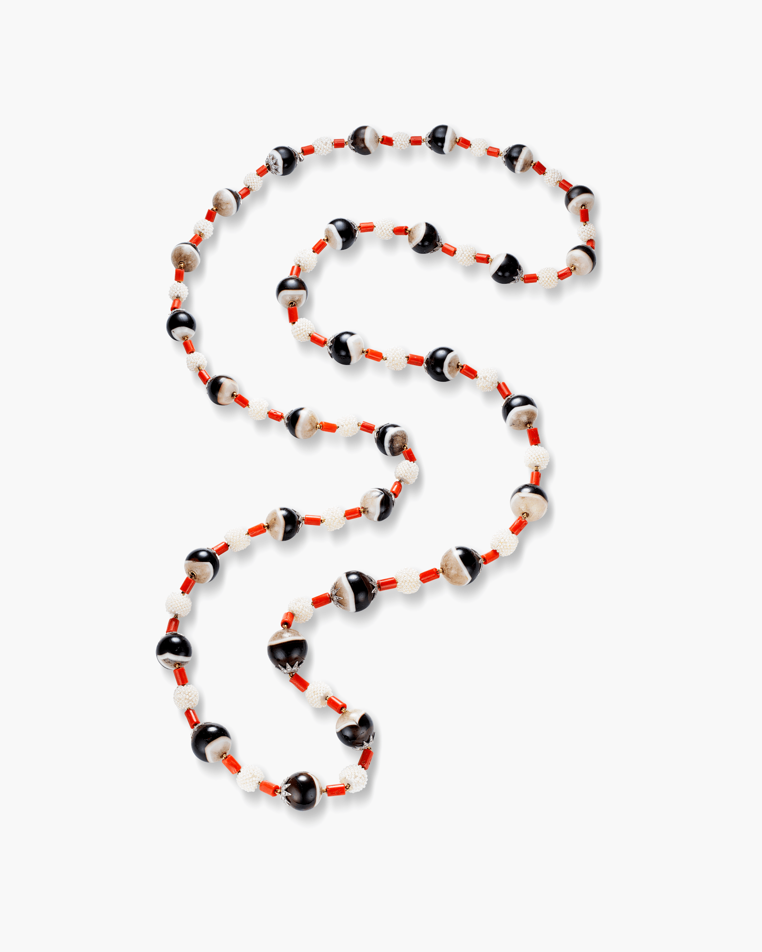 Art Deco Diamond, Agate, Coral and Seed Pearl Sautoir by Cartier
