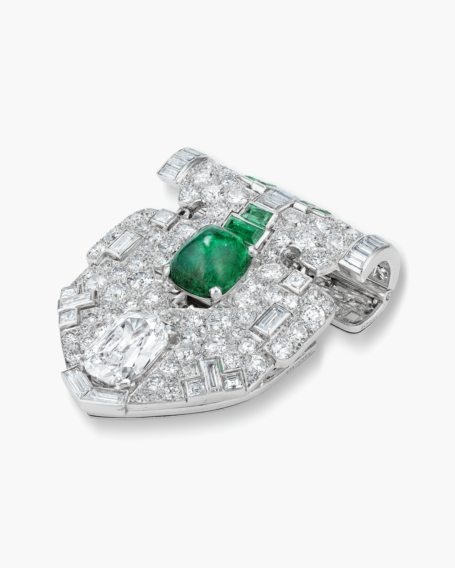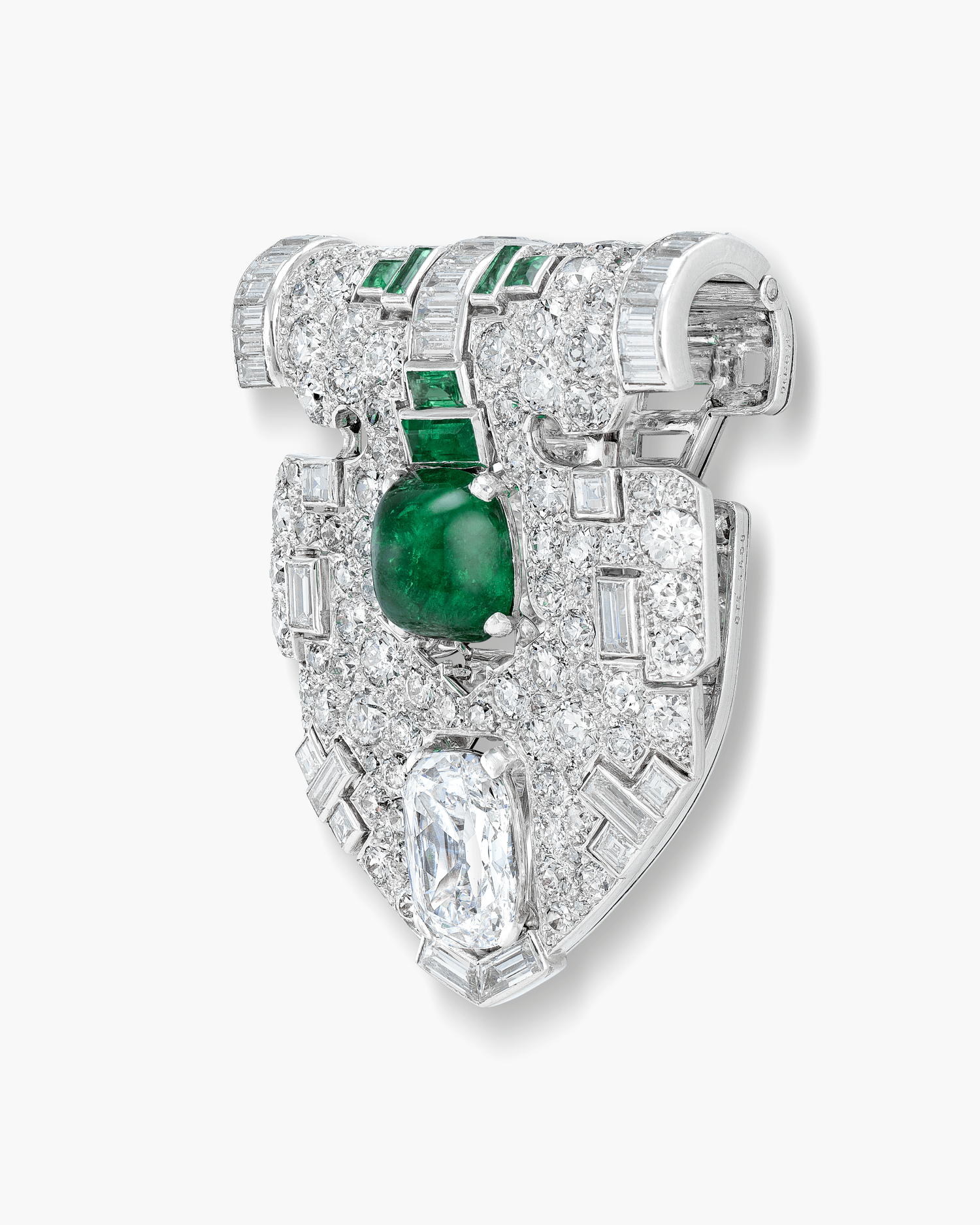 Art Deco Diamond and Emerald Clip by Cartier