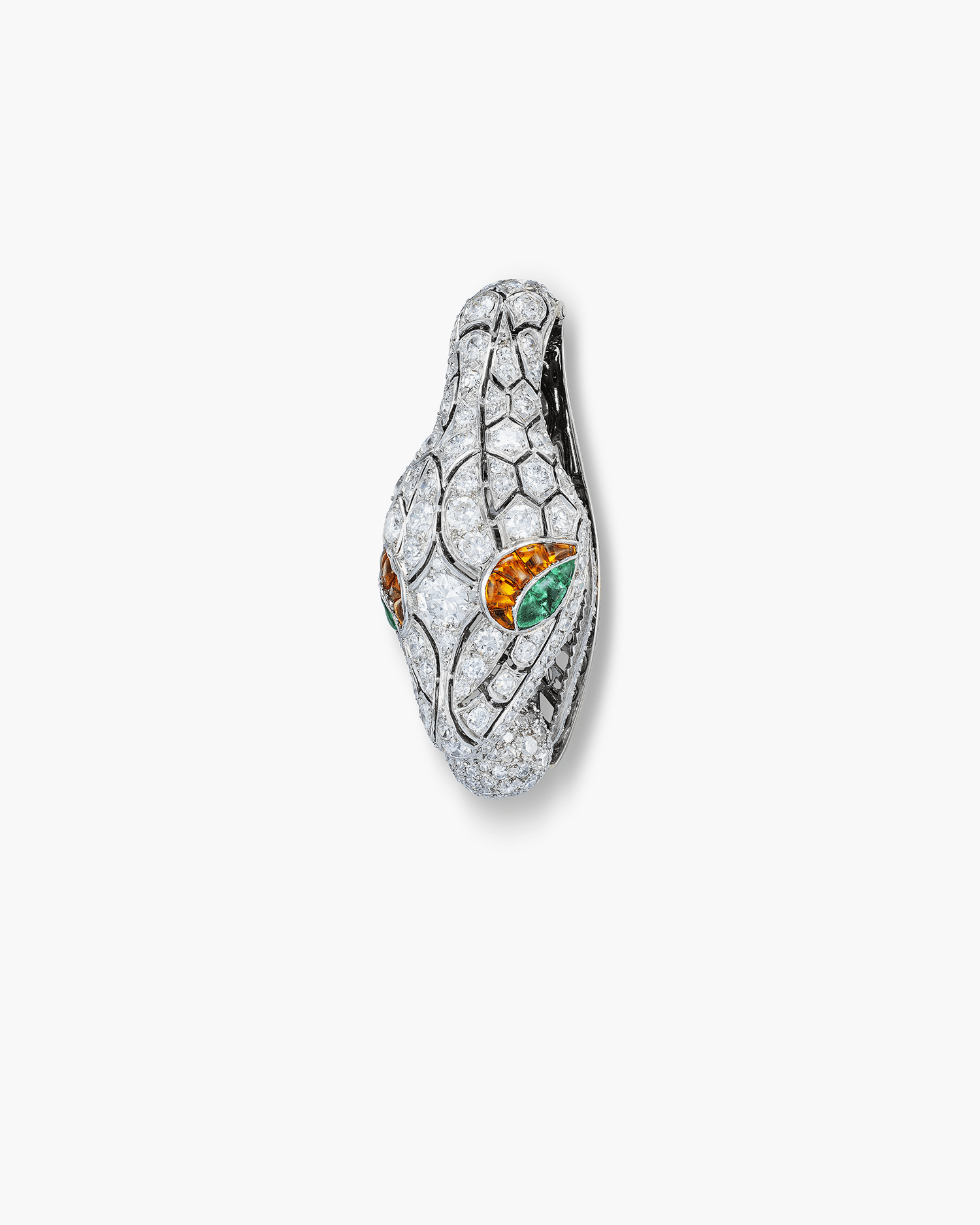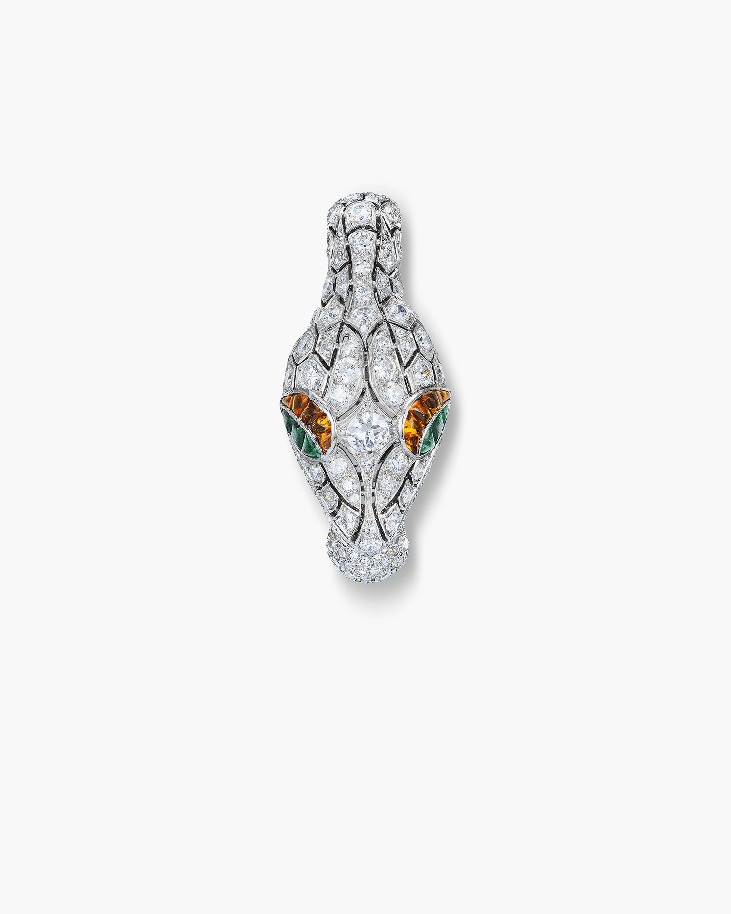Art Deco Diamond, Emerald and Citrine Snake Head Clip