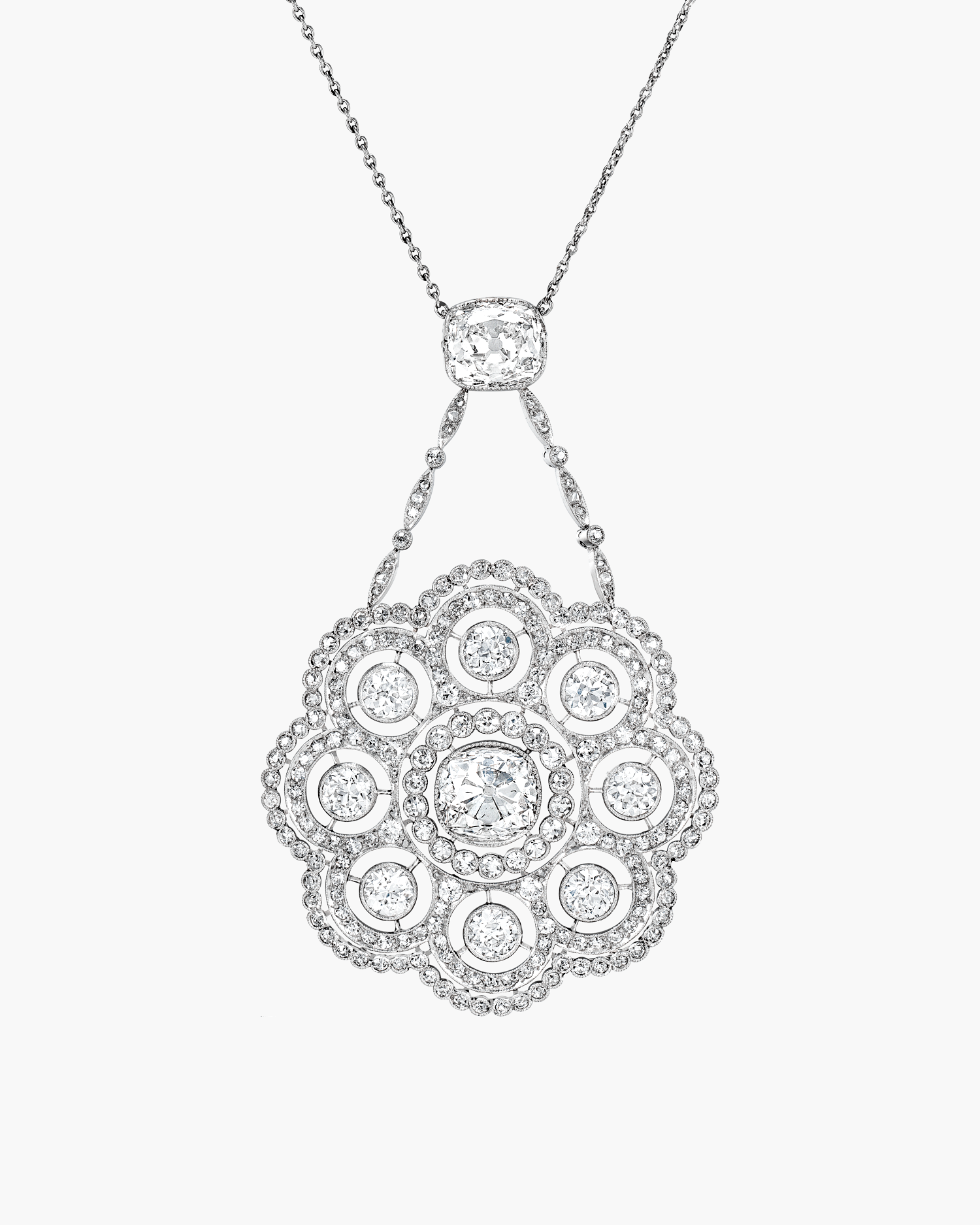 Edwardian Old Mine Cushion Diamond Pendant Necklace