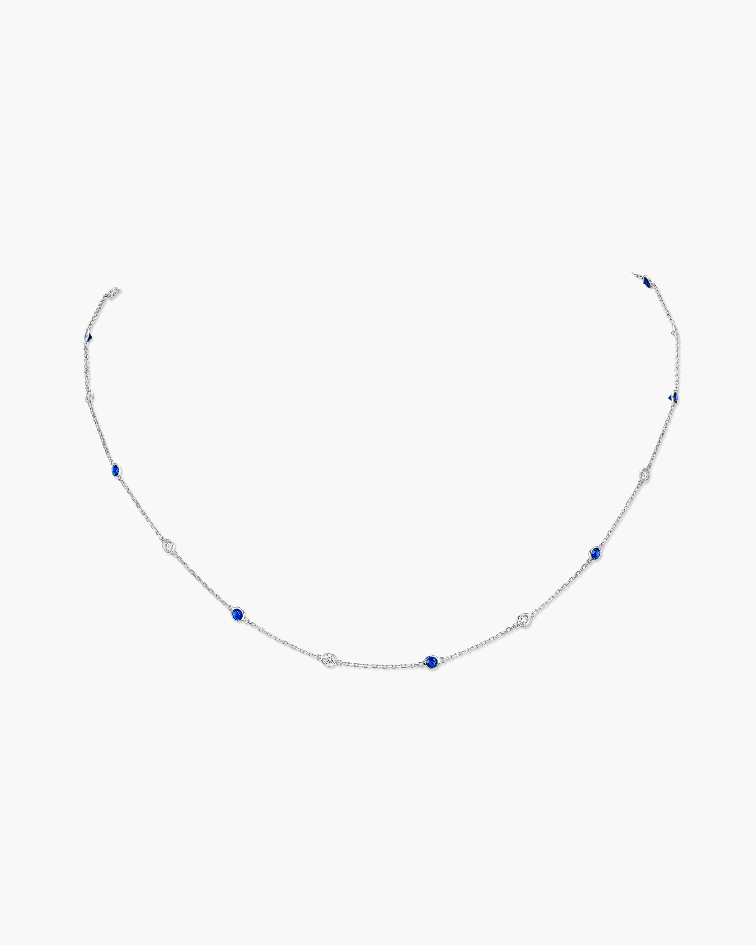 Round Brilliant Cut Sapphire and Diamond Necklace, 1.16 carats